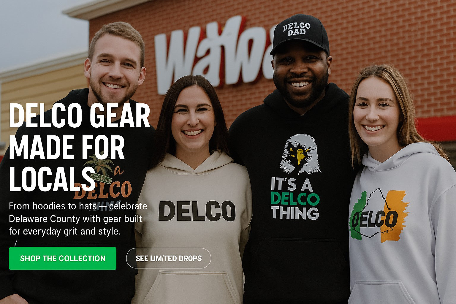 "Delco Brand isn’t just clothing—it’s an attitude. Every piece in the collection reps our roots, our hustle, and the unmistakable charm of Delaware County. From Wawa runs to SEPTA rides, hoagies to hometown pride, this is gear built for the ones who live and breathe Delco."